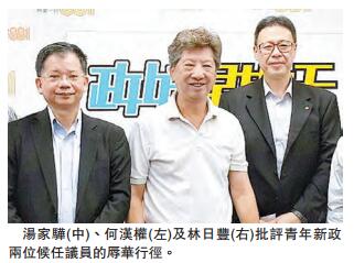 【香港商报网讯】记者冯仁乐报道:青年新政两名候任立法会议员梁颂恒及游蕙祯日前宣誓就职时,刻意将China(中国)读成近似「支那」,其大逆不道言行引起社会广泛批评。民主思路召集人汤家骅昨日表示,听到两人的誓词时感到愤怒和痛心,直斥两人的做法在政治和道德伦理上都不可接受。不少教育界人士亦批评,有关行为为学生带来极大冲击,质疑他们带头破坏香港核心价值。