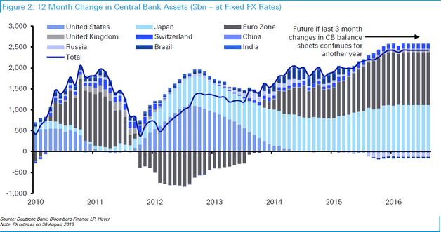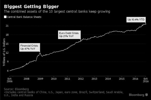 在央媽的“努力”下,全球央行的資產負債表仍在快速膨脹,且速度為五年之最。