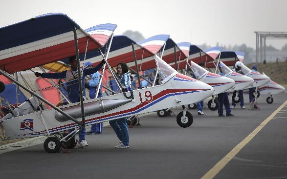 10月16日,一名朝鲜飞行员驾驶一架轻型飞机从平壤上空飞过。