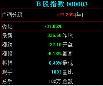 B股重挫 滬指午后跳水跌近1%