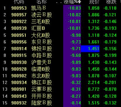 B股個股跌幅榜
