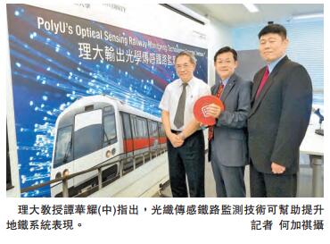 理大昨日公布,理大专属的光纤传感铁路监测科技首次获海外采用,将应用於新加坡地铁线,而率先於行使中的列车使用光纤传感器以持续监测路轨,属全球首例。他们指,现时恒常检测路轨的方法,普遍於列车停止服务后才进行,但新系统则利用行驶中的列车不断监测路轨,能快速识别并修正问题。又指市民对铁路服务可靠度的期望不断提高,这新维修方法最能满足期望,故预计会成为全球铁路工业的新趋势。