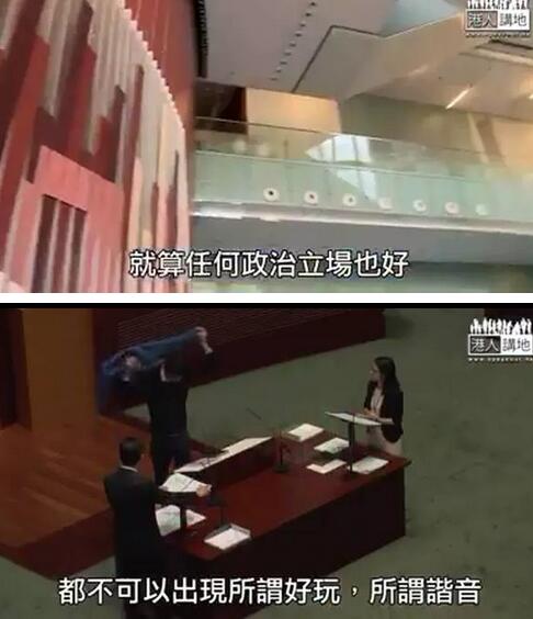 不过,综观立法会首场大会,多名激进派、”本土派“、”港独“议员在宣誓时大玩行为艺术,透过衣着、道具、贴纸、手势、加料等方式,表达政治诉求。而最离諎的莫过于近日多次凭爆粗、”扑嘢“抢尽眼球的青年新政游蕙祯,以及她的同党梁颂恒,她们以日本军国主义时期称呼中国的”支那“,读出”China“,誓词更夹杂粗口,惹来香港内外一片反感。即使在”黄丝阵营“中,不满其冒犯言论的亦大有人在;建制派更是大力反击,以民族主义旗帜大加挞伐,要求两人道歉,有社团甚至要求特区政府剥夺两人议员资格。