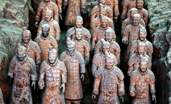 1974年,中国第一位皇帝秦始皇陵墓发现於陕西省西安市临潼区东5公里处的骊山,葬坑中整齐排列着兵马俑。这是真人大小的陶俑第一次在中国帝王陵墓中发现。