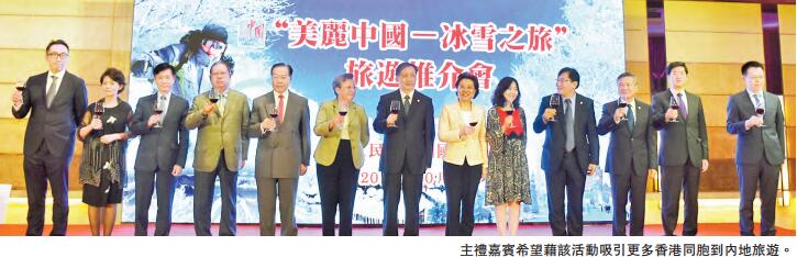 朱曼鈴致辭時表示,內地旅游資源豐富,風景優美,一向是香港人外出旅游的熱門首選。冰雪旅游品牌正好運用南北兩地文化及地理差異,定能吸引更多香港市民到訪內地。希望兩地旅游部門繼續保持緊密聯繫,進一步深化對外宣傳推廣、人才培訓、市場監管等方面合作,促進兩地旅游業持續健康發展。