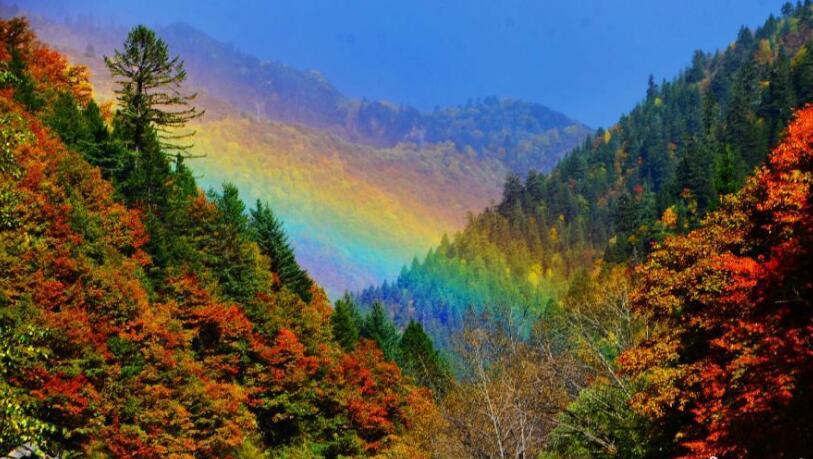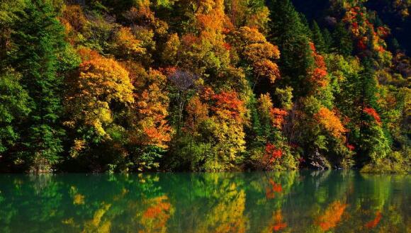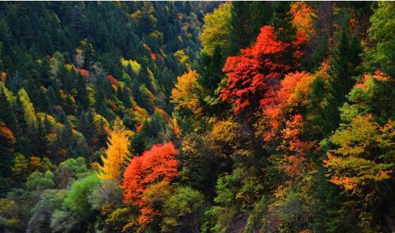 金秋10月,四川阿壩州黑水縣迎來了最美季節,數百裏彩林洋洋灑灑,河穀兩岸的楓樹、槭樹、樺樹、鵝掌松、落葉松等漸次經霜,樹葉被染成為五彩斑斕的顏色。紅葉由高到低層次分明地從山頂到河穀競相爭豔,構成了一幅萬紫千紅、五彩繽紛的天然彩色畫卷。圖為四川黑水奶子溝彩林風光 莊媛攝