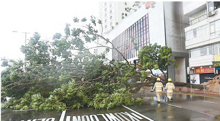 全港有大量樹木遭「海馬」吹倒,昨日中午12時許,銅鑼灣告士打道近景隆街行人路上,一棵約20米高大樹突然倒塌,壓毀欄杆後,橫告士打道路中,告士打道西行7條行車線中,共5條行車線受阻,幸無人受傷。昨午1時許,荔枝角消防局對開兩棵約30米高大樹,疑難耐強風吹打,均被連根拔起塌下,分別壓毀停泊局內的一輛私家車及停泊在路邊表位的私家車;此外,西貢龍尾村昨晨亦有大樹塌下壓毀一輛私家車。
