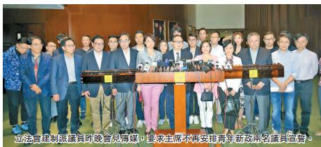 建制派立法會議員昨晚召開緊急會議,廖長江會後表示,建制派已達成共識,並決定去信梁君彥,要求主席不再為游蕙禎及梁頌恆安排宣誓。