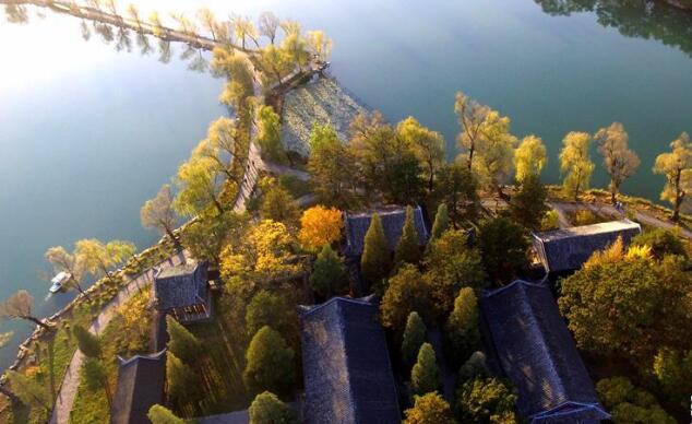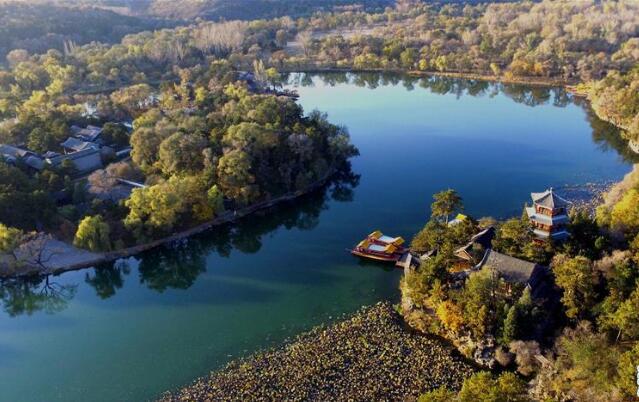 时值深秋,河北承德避暑山庄被秋风浸染,景色迷人。图为10月23日航拍的河北承德避暑山庄秋色。 新华社发(王立群 摄)