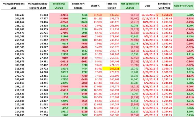 最新的COT報告顯示,截至10月18日當周,對沖基金和基金經理連續三周減持Comex黃金凈多頭頭寸,凈多頭寸降至3月來最低值。更為重要的是,在金價反彈同時凈多倉減少的情況,在今年只發生過兩次。