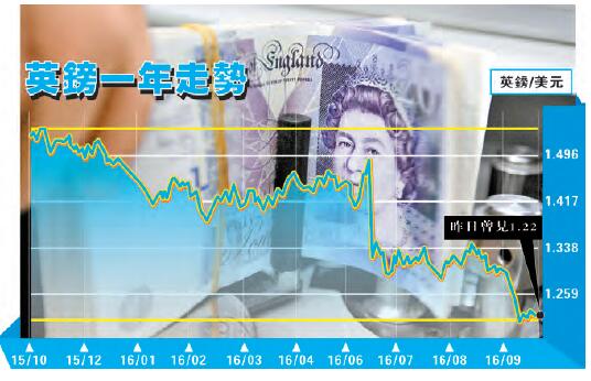 雖然英鎊已累跌逾10%,但當地經濟前景不明朗。賴春梅指出,英國經濟有下行的壓力,英國央行都有可能進一步減息,這將使英美貨幣政策差異進一步擴大,因美國今年12月會進一步加息,英國卻會進一步減息,這貨幣政策的差異有可能令英鎊兌美元進一步跌,中期來看,英鎊有機會再試早前低位1.18,甚至1.15。