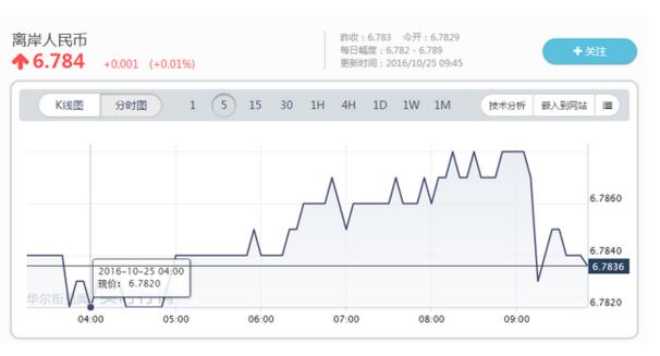 隔夜離岸人民幣兌美元一度刷新紀錄低點至6.7852元,后震蕩下行,今早一度最低跌至6.7890,現報約6.784。在岸人民幣開盤下跌,現報約6.7765。