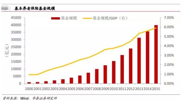 截止到2015年底,中國基本養老保險基金資產規模為39937億,但在扣除預留支付資金外,全國可以納入投資運營范圍的資金總計約2萬億元。即便以30%的入市上限計算,最終只有6000億元左右可以入市。