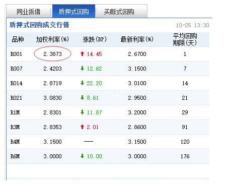 中國貨幣市場再現資金緊張,隔夜質押式回購利率飆升約14個基點,至2.3873%,至少創2015年4月以來新高。