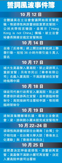【香港商报网讯】记者林骏强报道:「青年新政」梁颂恒及游蕙祯於早前立法会宣誓时「辱华宣独」引发全城怒吼。昨日,立法会主席梁君彦宣布,决定押后为梁游二人监誓,直至相关司法覆核有裁决结果,亦就是说,梁游都不能於今日立法会大会重新宣誓。梁君彦强调,决定考虑到事态发展及《基本法》和《议事规则》等因素,「有充分理由」押后二人宣誓。据悉,今日会有几十个团体发起「反辱华、反港独」万人集会,促请依法将梁游二人驱逐出立法会。