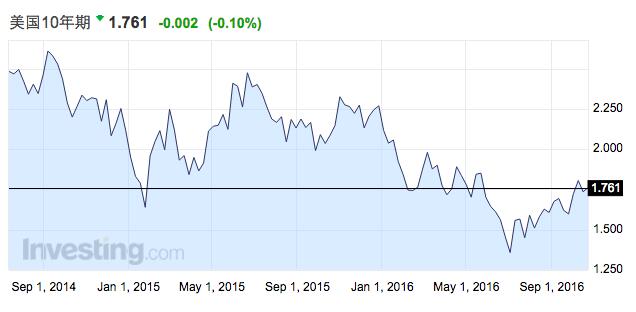 上述人士也表示,近期很多國家的債券收益率都已經走翹,這與全球貨幣寬松政策邊際效應減弱有關。不過美債收益率仍然較為穩定。北京時間10月25日14:45,美國10年期債券收益率為1.67%,與今年6月時基本持平,較2014年接近3%的水平較大幅度下降。