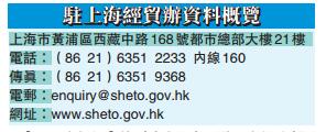 【香港商报网讯】特区政府公布,驻上海经济贸易办事处(驻沪办)入境事务组日前投入运作,为身处上海市以及浙江、江苏、安徽和山东省的港人提供协助。