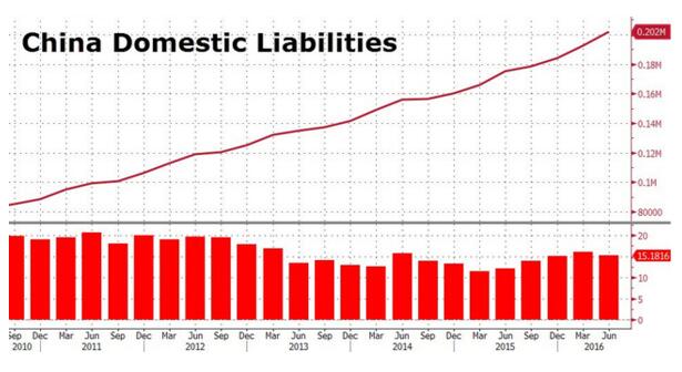 中國銀監會昨日發布的數據顯示,截至9月,銀行業金融機構總資產達到217.3萬億元,同比增長15.7%;總負債則首次超過200萬億元,同比增長15.5%至200.4萬億元。