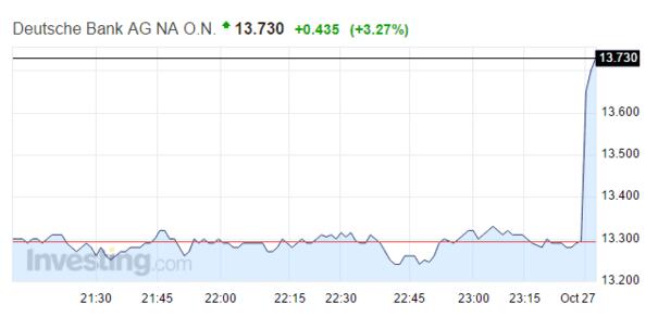 德銀發布三季度財報,凈利潤2.78億歐元,遠超凈虧損3.94億歐元的預期,去年同期凈虧62億歐元;營收74.9億歐元,同比增長2.7%,高于71.9億歐元的預期;稅前利潤6.19億歐元,大幅好于3.79億歐元的預期。