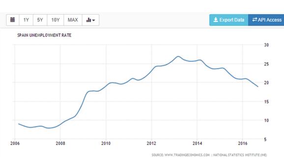盡管政治僵局持續了10個月之久,不過西班牙經濟復蘇的步伐并沒有因此停下來。西班牙的失業率已降至20%以下,為逾6年來首次。不過,西班牙的失業率仍是歐洲最高的國家之一。