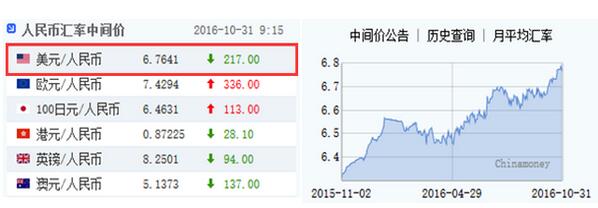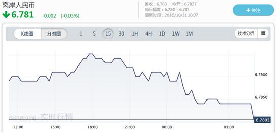 中間價公布后,在岸、離岸人民幣雙雙走高。在岸人民幣兌美元開盤報6.7702,上日收報6.7810。離岸人民幣兌美元上漲至6.781,稍早最低報6.7908。上周公布的美國三季度GDP初值增長2.9%,創兩年最快增速,美聯儲加息預期進一步強化。