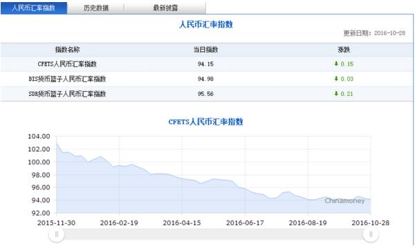 上周五(10月28日)人民幣中間價跌破6.77,且連續刷新六年新低。中國外匯交易中心數據顯示,28日CFETS人民幣匯率指數為94.15,按周跌0.15。