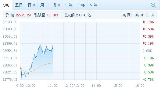 港股恒指今早低開108點,隨后震蕩上揚。截止發稿,港股恒指轉漲0.1%,報22972點,成交額252萬。
