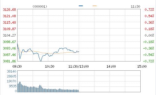 周一兩市低開低走,滬指失守3100點,黃金、債轉股概念逆勢拉升,兩市近2000股下挫。截至午間收盤,滬指跌0.45%報3090點,深成指跌0.44%報10664點。