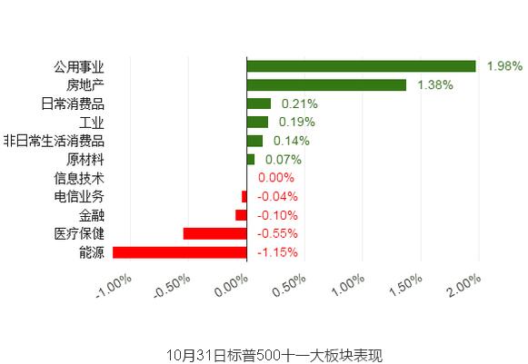 10月份累计,道指下跌0.9%、标普500指数下跌1.9%、纳指下跌2.3%。标普500和道指连续第三个月收跌,其中道指创下2011年以来最长月度连跌纪录。纳指结束三个月连涨。