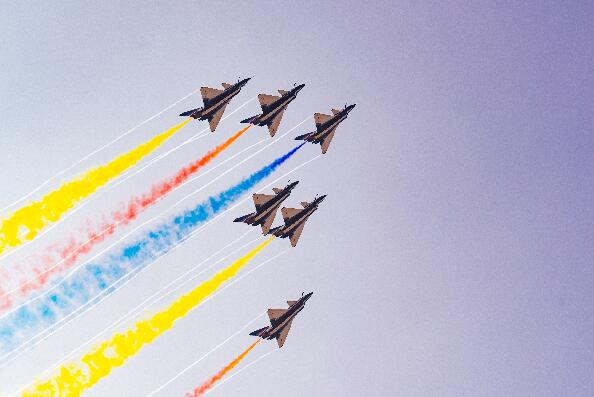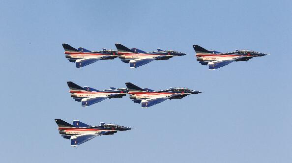 11月1日,参加第十一届中国航展的中国空军八一飞行表演队歼-10战机进行编队飞行。
