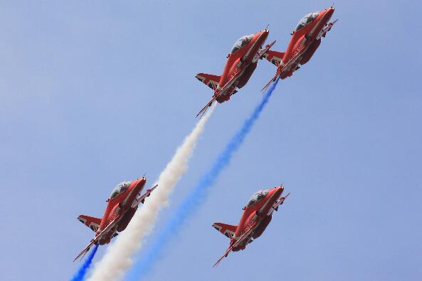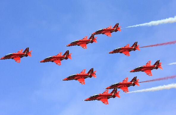 11月1日,参加第十一届中国航展的英国皇家空军“红箭”飞行表演队进行编队飞行。