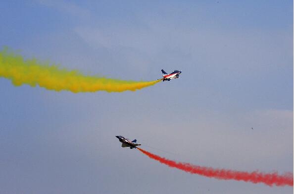 11月1日,参加第十一届中国航展的中国空军八一飞行表演队举行飞行表演。