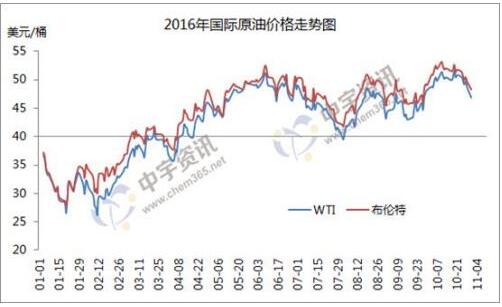 在本輪計價周期內,國際油價震蕩下跌。截至10月31日收盤時,當日,美國WTI原油期貨跌1.84美元,報每桶46.86美元;布倫特原油期貨跌1.41美元,報每桶48.30美元。