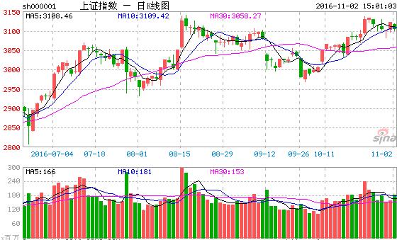 新浪財經訊 11月2日消息,今日兩市再次陷入弱勢走勢,盤中伴隨多次恐慌盤釋出,滬指回到3100點附近盤整,創業板走勢惡劣,回吐昨日漲幅,盤中刷新周一低點。熱點依舊集中在少數幾個板塊之上,總體而言市場情緒謹慎,黃金股受益大漲。午后,三大股指依然呈現低位震蕩格局,滬指尾盤再度下行,3100點盤中一度失守。