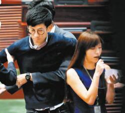 【香港商报讯】记者林骏强、冯炜强报道:激进反对派候任议员梁颂恒、游蕙祯不顾立法会主席梁君彦裁决,昨日再度硬闯会议厅,更拿出自备扩音器「自行宣誓」,多位反对派议员亦趁机大肆捣乱。因场面混乱,会议曾更改地点重开并四度中止。惟梁游二人联同十多人多番暴力冲击下,有6位保安受伤送院,最终主席不得不召警协助并宣布休会。至此,新届立法会开锣后第三度未能顺利完成大会。