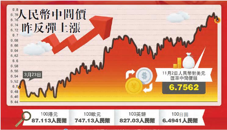 【香港商報網訊】在經過10月份的快速調整后,人民幣兌美元匯率近日跌勢有所放緩,昨日人民幣兌美元中間價報6.7562,較上一交易日大幅上調172點,創下近兩周的新高。受訪專家認為,人民幣的回升與美元指數的回落以及中國經濟數據的走強有關。短期而言,美元指數仍是關鍵,而將近的美國總統大選對匯率市場價格有所沖擊,但持續時間不會太長;長期而言,人民幣持續下行可以預期,但貶值幅度不會太大。香港商報記者朱輝豪