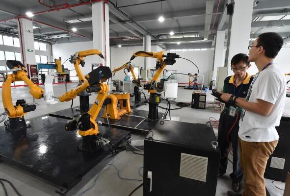 資料圖片:工業用弧焊機器人 新華社記者李賀攝