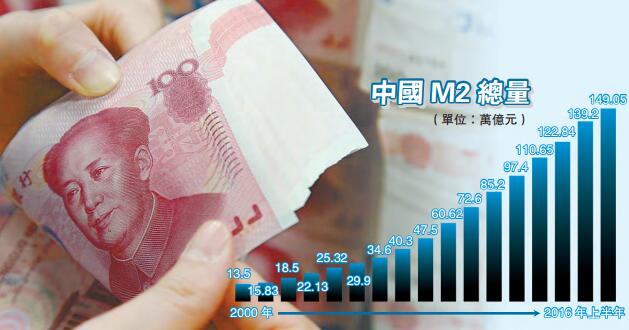 报道指出,尽管实体经济增长放缓,中国货币供应量仍保持着两位数的百分比增长。今年三季度末,中国广义货币(M2)与GDP之比已经处於210%的历史高位,杠杆水平不降反升。9月初,人行副行长易纲表示,中国总体杠杆率比较高,杠杆率一年增9个百分点太快,短期要稳杠杆就是将这一速度降下来。