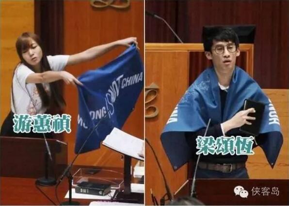 我們先簡單勾勒一下這件事:按照基本法的要求,所有選舉出的立法會候任議員,都需要經過宣誓環節認定,成為正式議員。但在前些天的宣誓環節中,梁頌恒、游蕙禎兩名候任議員在這一環節中,身披或手持“Hong Kong is not China”(香港不是中國)的旗幟,并發表諸如把China讀成“支那”、把“Republic”讀成“Re-Fucking”等辱華言論,引發全球華人憤怒。香港立法會主席梁君彥也當場裁決二人宣誓未獲通過。