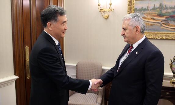 3日,在土耳其访问并主持中土副总理级政府间合作委员会首次会议的国务院副总理汪洋与土耳其总理耶尔德勒姆举行会见。