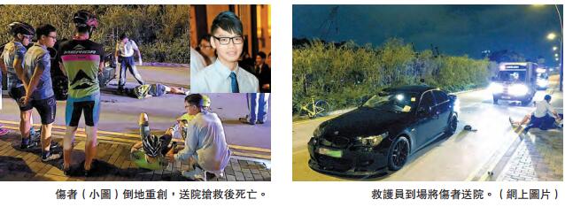 【香港商报网讯】记者冯仁乐报道:通往启德邮轮码头唯一道路承丰道前晚深夜发生1死2伤严重车祸,一对年轻兄弟偕友人为月中单车比赛练习期间,遭疑越线「P牌」私家车连环撞倒3辆单车,3名车手人仰马翻倒地,其中兄长送院抢救後,延至昨日凌晨伤重死亡,涉案司机被捕扣查,家人称会将死者眼角膜捐出遗爱人间。