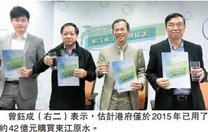 香港願景計劃召集人曾鈺成表示,食水是市民生活不可或缺的一環,香港食水供應主要來自東江水及本地水塘,分別約佔七成五及二成半,其中東江水費用不便宜,港府僅於2015年已用了約42億元購買東江原水,而隨經濟及人口進一步增加,相信東江水只會越來越貴。