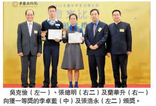 获得一等奖的同学李卓蓝表示,写作是发挥心情的好机会,平时很喜欢写作文及抒情文,她感谢家长和老师的栽培;另一位得奖同学张浩永称,由於自己自小学练习书法,对书法的认识较深,故参赛亦以此为题,但坦言自己对中华文化的其他内容认识仍不足,希望更多了解。