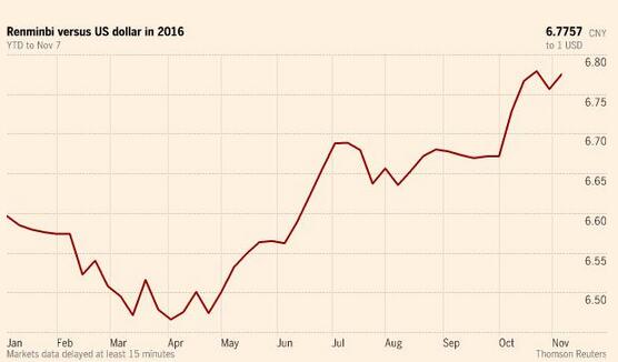 昨日,人民幣匯率下跌了0.25%,盡管美國大選才是外匯市場的關注焦點。美元隨著投資者對于希拉里.克林頓(Hillary Clinton)勝選預期的升高而加強,人民幣并未免受這一局面的影響。