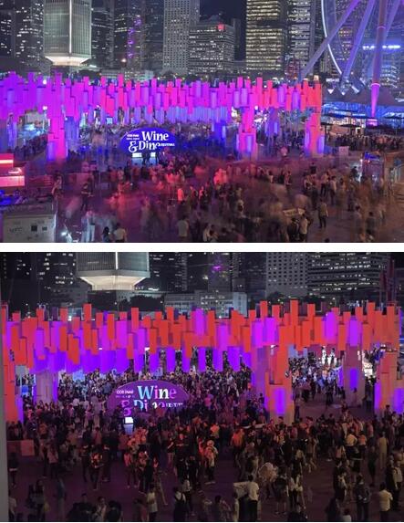 今次的美酒佳肴巡礼设在中环海滨活动空间,是历届规模最大的一次,囊括五大主题,摆出280个美酒摊位以及130余个美食摊位。场地是欣赏美丽维港的绝佳地方,日夜景色,各自各精采,朋友把酒言欢,一乐也。
