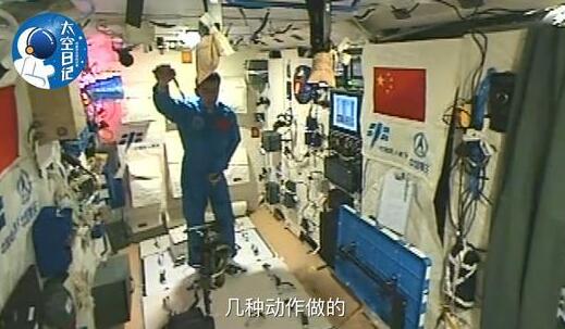 王林杰解说:航天员对解决问题有好奇心,就是不信跑不起来。我们分析,最初跑不起来,是姿态控制的问题,对于刚到太空的人来说,姿态适应需要时间。