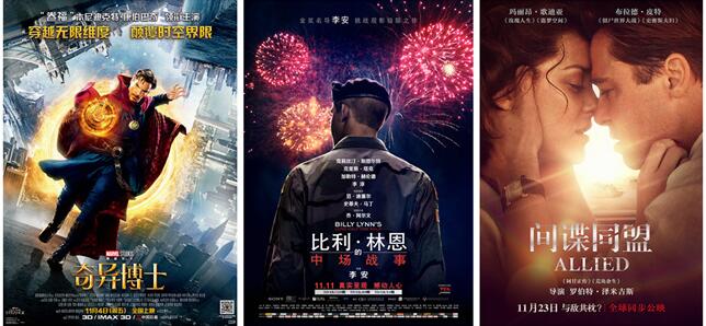2016年中國電影票房從第一季度的飆升到第三季度的低迷,如同過山車一般,十個月中半數同比下跌,不得不讓人擔憂“凜冬將至”。僅剩兩個月左右,截至11月8日,來自藝恩智庫的數據顯示,2016年中國電影票房僅388.6億元,距離年初業內人士預估的600億元相距甚遠。這個月,《奇異博士》、《魔發精靈》、《間諜同盟》等進口分賬片云集,李安、馮小剛新電影《比利·林恩的中場戰事》和《我不是潘金蓮》前后上映,讓大家對票房淡季有了些期許:中國電影票房能否借此挽回連月下滑的頹勢?