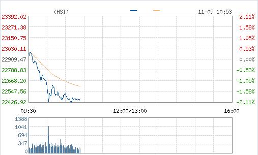美國大選進入點票程序,共和黨候選人特朗普在選舉人票上最新反超前民主黨希拉里,“搖擺州”形勢市場仍未明朗,恐慌情緒升溫,美股三大指數期貨急跌。恒生指數今早高開0.61%,重返23000點之上,開盤后掉頭向下,最高跌逾800點,低見22104點。截至發稿,恒生指數報22110.73點,跌3.5%。大市成交額377.6億。