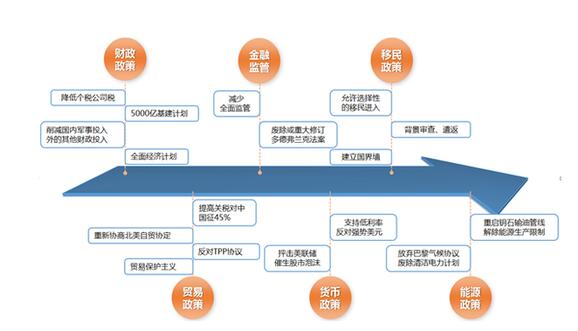 特朗普在意识形态上偏向民粹主义,在财政政策上倾向于扩张,在货币政策上倾向于质疑美联储现有体系,在对外政策上倾向于反对移民、反对自由贸易的孤立主义。但根据特朗普之前的言论特朗普的政治主张不乏矛盾和前后不一的地方。所以未来特朗普当选将存在更多的不确定性。