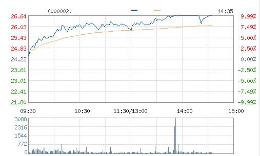 周三,萬科A震蕩走高,截止發稿,萬科A漲9.95%,報26.63元。